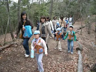 山道で落ち葉を踏んで、昔の美濃路ハイクのようで、こんな道で美濃路が歩けたらいいなあと話しました。日頃の運動不足解消になりましたとお母さん達もうっすら汗をかいてみえました。